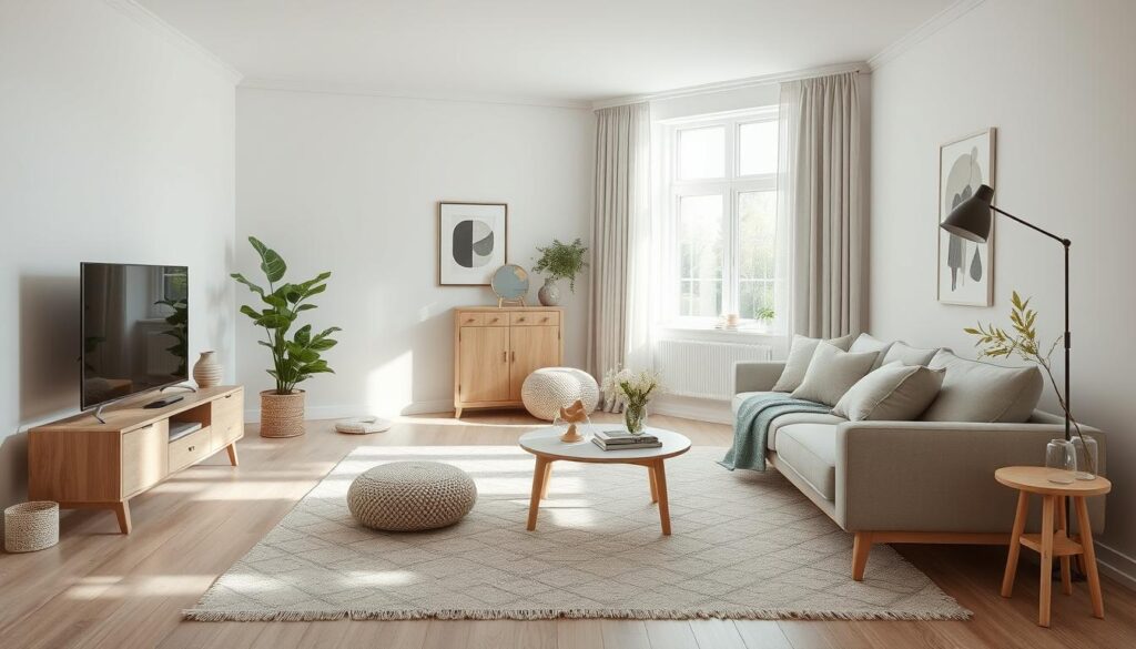 It’s key to understand that Scandinavian design is not just simple. It’s about choosing colors, textures, and shapes carefully. Adding natural materials and cozy textiles makes spaces feel welcoming, not just a bunch of stuff.